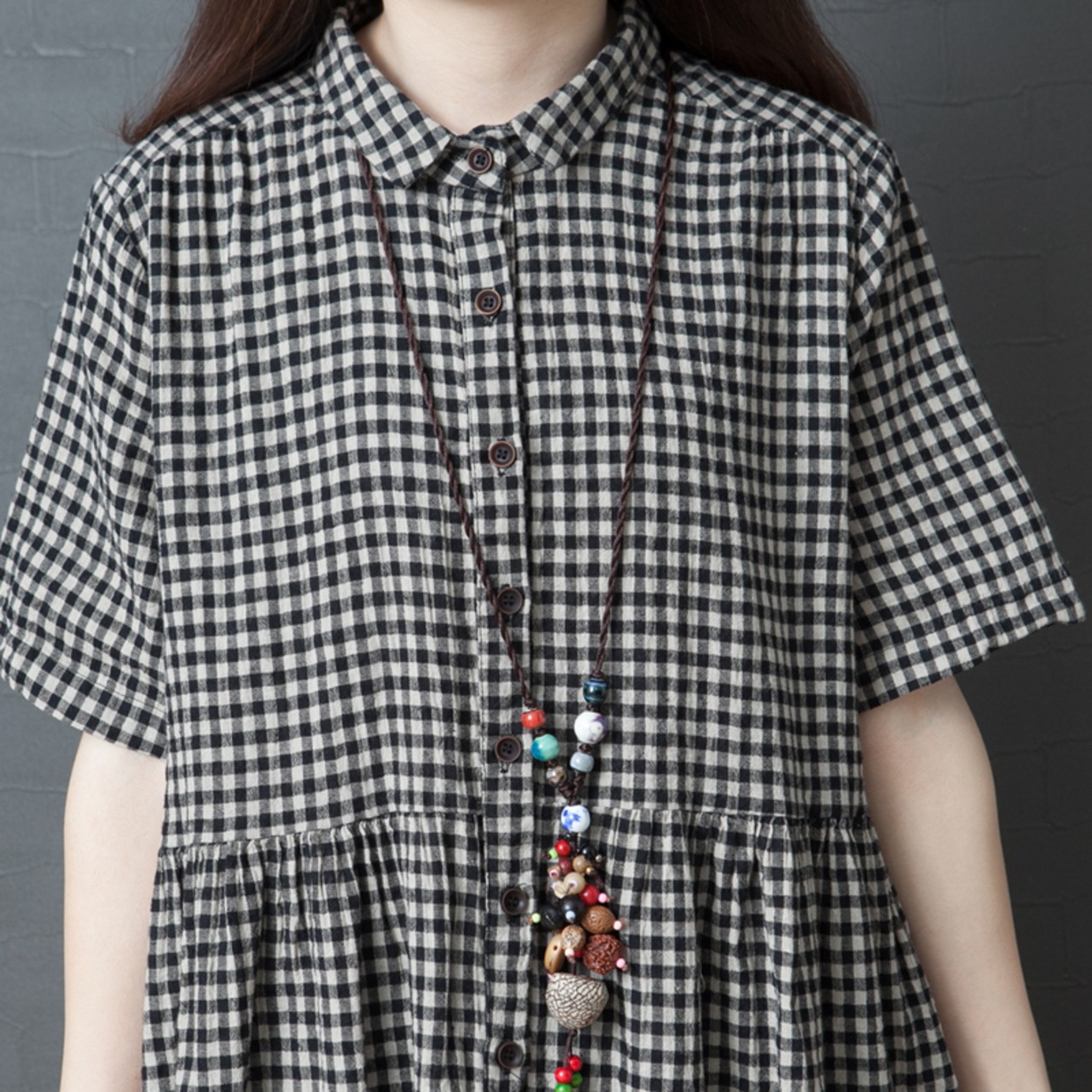 ギンガムチェックがキュートな印象にしてくれるシャツワンピース。