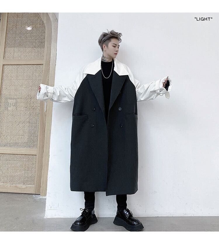 袖とボディーがバイカラーになっている韓国スタイルのコートです。