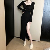 ワンピース デート 膝下 ミモレ ミディアム丈 ミドル丈 袖あり 長袖 ラウンドネック ストレート Iライン スリット サイドスリット かわいい 大人可愛い きれいめ シンプル カジュアル 大人 上品 おしゃれ お洒落 かっこいい 大人可愛い 大人女子 こなれ感 ラフ ラブリー キュート ガーリー 個性的 クール モード系 セクシー エレガント モダン 主役級 存在感 フォーマル とろみ感 抜け感 無地 春 夏 秋 冬 オールシーズン シーズンレス 誕生日 成人式 入学式 入園式 二次会 ブラック | Come to Store