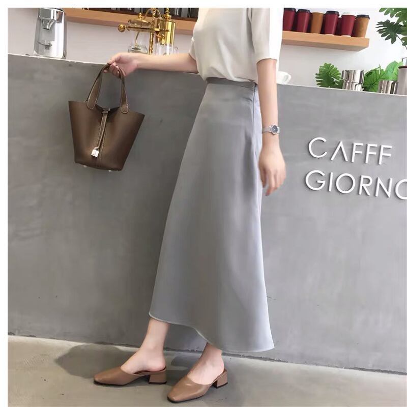 上品な光沢感が魅力のサテンスカートは、裾に向かってゆるやかに広がるナローシルエットでエレガントに。