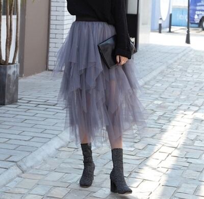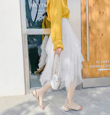 透け感がおしゃれなチュールスカート。
