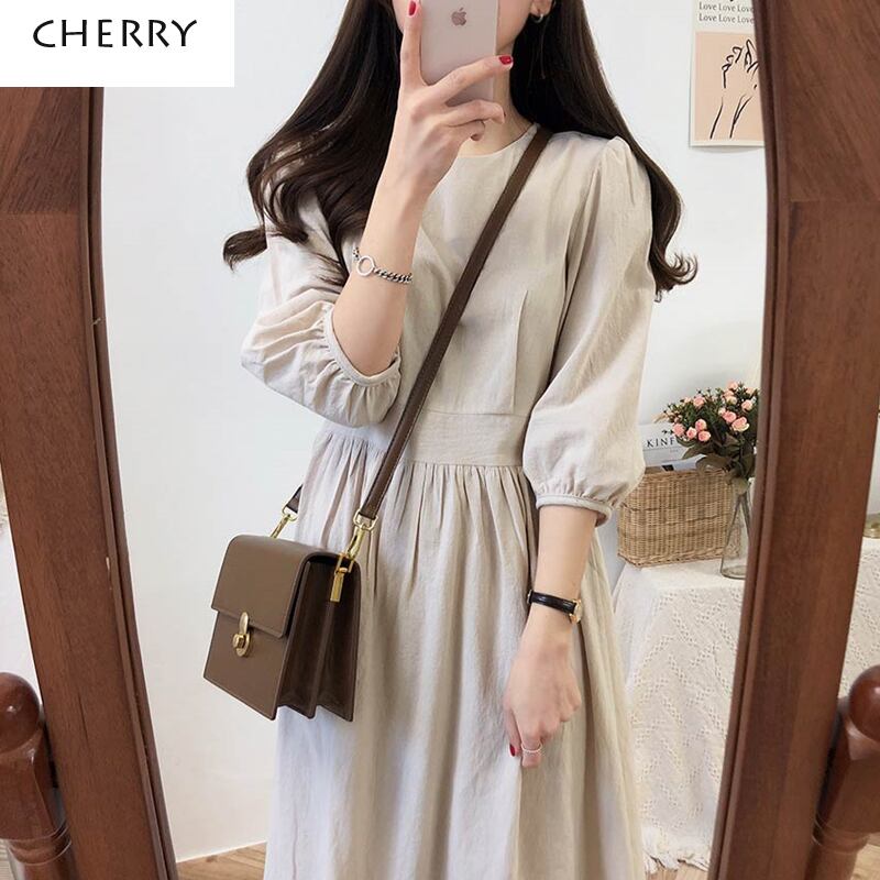 ワンピース ロングスカート プリーツスカート フレアワンピース ロング ロング丈 7分丈 袖あり 7分袖 パフスリーブ Uネック ラウンドネック 襟なし フレア ドッキング ベルト ウエストマーク ドッキング かわいい 大人可愛い きれいめ シンプル カジュアル 大人 上品 おしゃれ 大人女子 ラフ ラブリー キュート ガーリー 無地 春 秋 10代 20代 30代 レディース 女性用 オフィス デート お出かけ 女子会 休日 着回し 普段使い 韓国 コーデ 楽ちん 体系カバー S M L XL ピンク | Come to Store