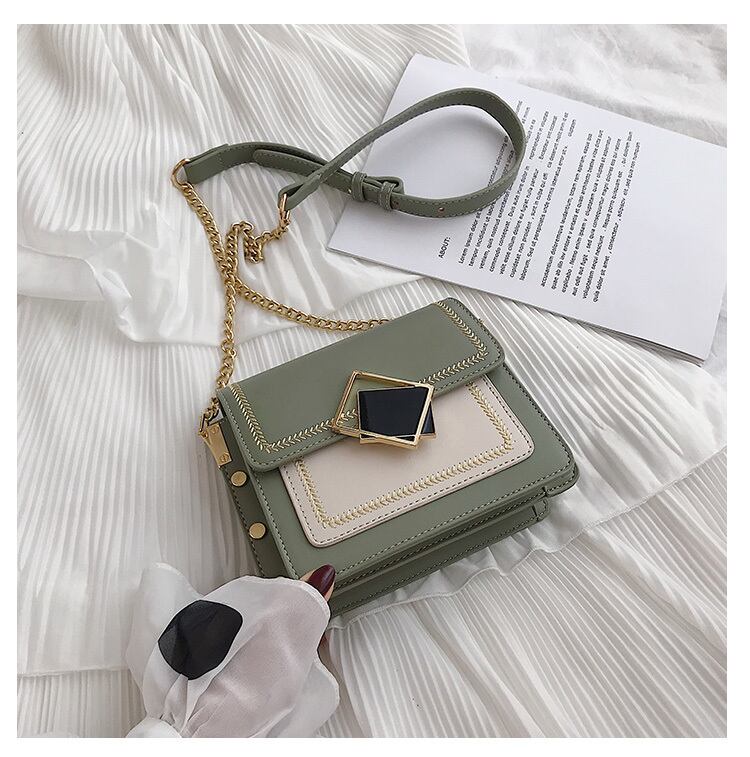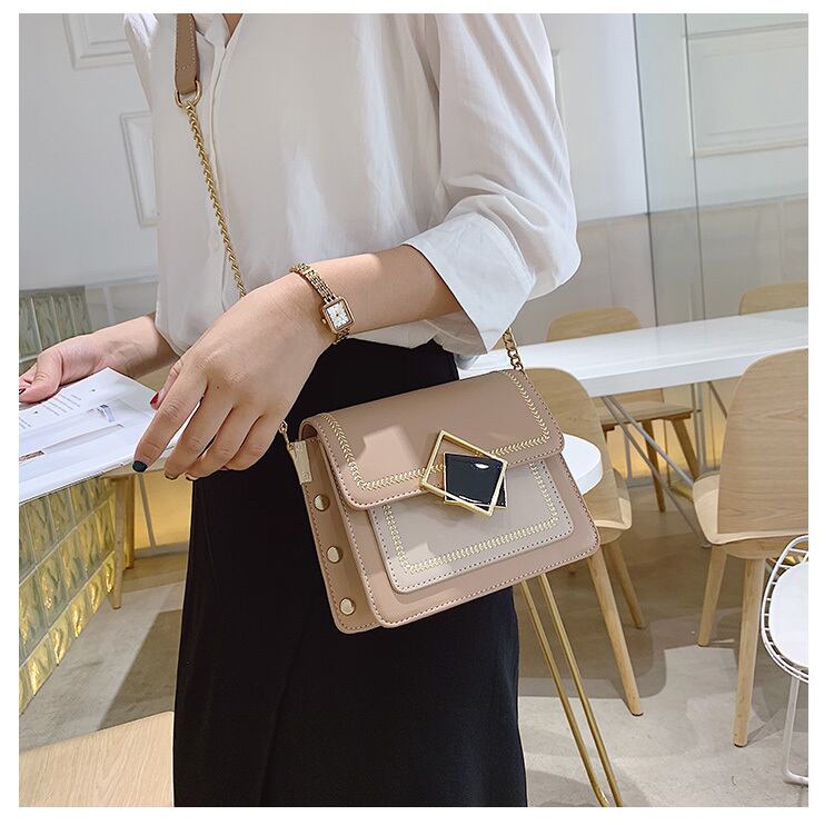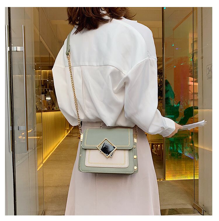 チェーンストラップのバイカラースクエアミニショルダーバッグです。