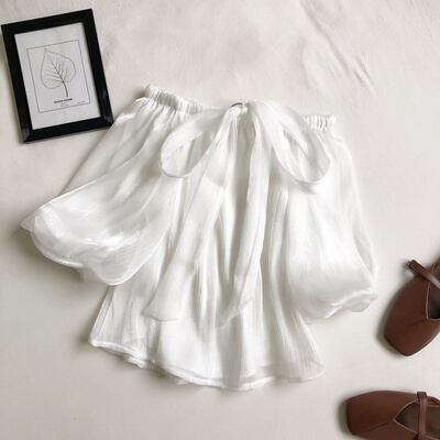 オフショルダー パフスリーブ ブラウス トップス プルオーバー 袖あり 半袖 五分袖 ボリューム袖 パフスリーブ オフショル チュール シフォン リボン ふわふわ かわいい 大人可愛い きれいめ シンプル カジュアル 大人 上品 おしゃれ 大人女子 ラブリー キュート ガーリー 存在感 春 夏 冠婚葬祭 10代 20代 30代 40代 50代 60代 デート 休日 着回し 普段使い フリーサイズ 7色展開 ホワイト ブラック グレー カーキ ピンク ネイビー ライトブルー | Come to Store