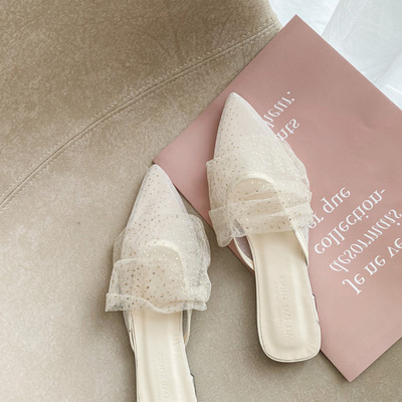 ビジュー キラキラ ポインテッドトゥ サンダル ミュール ミュールサンダル フラットシューズ フラット ぺたんこ ペタンコ ふわふわ パール チュール シフォン かわいい 大人可愛い きれいめ 大人 上品 お洒落 エレガント きちんと感 キュート ガーリー 女っぽ 個性的 春 夏 冠婚葬祭 10代 20代 30代 40代 通勤 デート お出かけ 休日 パーティー イベント デイリー 普段使い 韓国 コーデ 高見え 格上げ インスタ映え 小さいサイズ 大きいサイズ 2色展開 ホワイト ブラック | Come to Store
