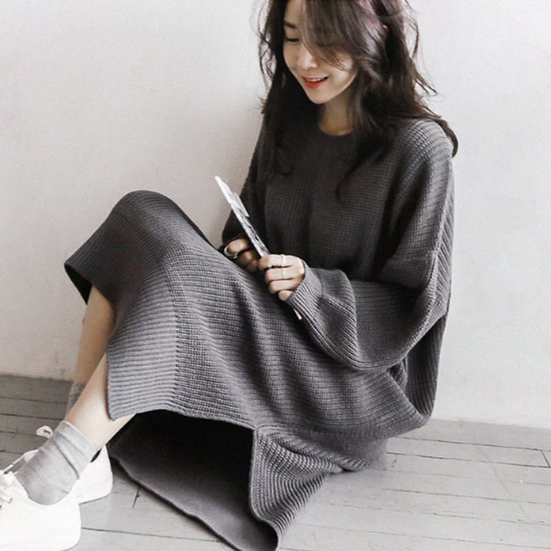 ワンピース ミモレ 袖あり 長袖 Uネック ラウンドネック 襟なし スリット サイドスリット ふわふわ 伸縮性 ニット かわいい 大人可愛い きれいめ シンプル カジュアル 大人 上品 おしゃれ 大人女子 こなれ感 ラフ ラブリー ルーズ エレガント モダン 抜け感 無地 秋 冬 10代 20代 30代 レディース デート お出かけ 女子会 休日 着回し 普段使い 重ね着 韓国 オルチャン ファッション コーデ スタイル 楽ちん 暖かい モテ 体系カバー トレンド インスタ映え ゆったり ゆる モノトーン | Come to Store