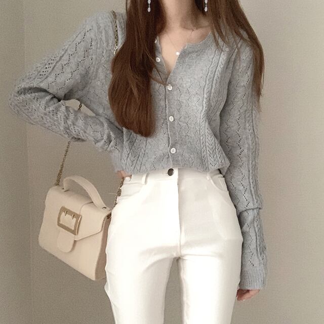 透かし編みニット生地でこなれ感のあるニットカーディガン。