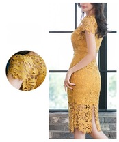 フレアワンピース ワンピドレス 膝上 ミモレ丈 袖あり 半袖 フレンチスリーブ Vネック 襟なし スリム タイト 細身 ストレート Iライン スマート レース 透け感 きれいめ 大人 上品 大人女子 セクシー エレガント フォーマル 無地 夏 結婚式 二次会 披露宴 40代 50代 レディース パーティー ホテル バックスリット 花柄 アジアン イベントサイズ S M L XL色展開 カラーイエロー ワインレッドお洒落 イベント 韓国系ファスナー シースルー エキゾチック OL ドレッシー | Come to Store