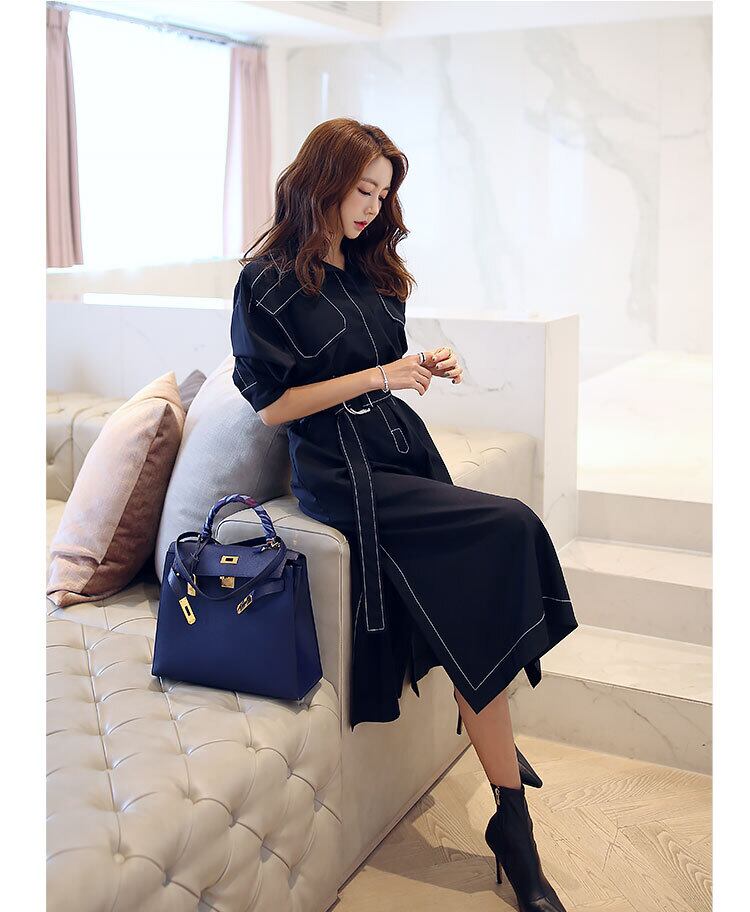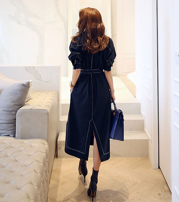 ホワイトステッチ ロング ワンピース シャツワンピース デニムワンピース ロング丈 袖あり 5分袖 五分袖 襟付き ストレート ベルト ウエストマーク サイドスリット バックスリット ブルーデニム カラーデニム かわいい 大人可愛い きれいめ シンプル カジュアル 大人 上品 おしゃれ 大人女子 こなれ感 クール モード系 無地 春 夏 10代 20代 30代 40代 オフィス ビジネス OL 通勤 デート 休日 着回し 普段使い 韓国系 コーデ トレンド 流行 インスタ映え S M L XL 2色展開 | Come to Store