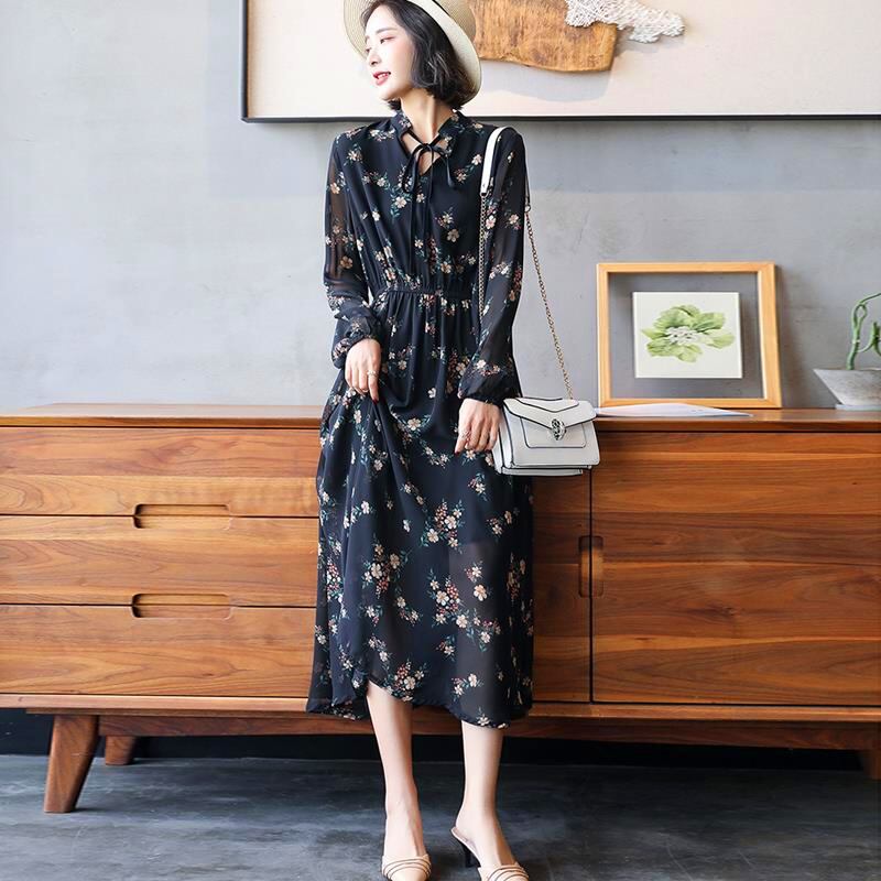 花柄 透け感 ロング ワンピース フレアワンピース ロング丈 マキシ マキシ丈 アンクル丈 袖あり 長袖 ボリューム袖 スタンドカラー フレア セミフレア シフォン リボン ウエストゴム かわいい 大人可愛い きれいめ カジュアル 大人 上品 おしゃれ レトロ 大人女子 ラブリー キュート ガーリー とろみ感 お嬢様 清楚 フラワー 春 秋 10代 20代 30代 40代 通勤 通学 デート お出かけ 女子会 お泊まり 休日 リゾート 着回し 普段使い 韓国系 ファッション 体系カバー トレンド 流行 | Come to Store