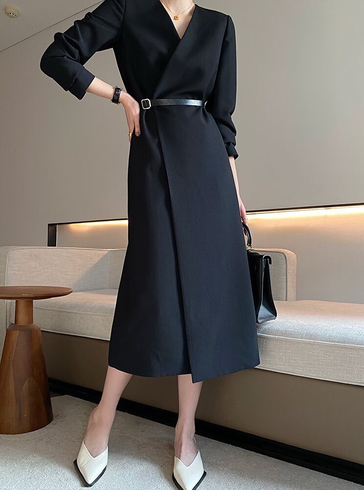 ガウンワンピース ワンピース フレアワンピース ワンピドレス ミモレ ミモレ丈 袖あり 7分袖 七分袖 Vネック 襟なし セミフレア スリム 細身 Aライン ベルト ウエストマーク かわいい 大人可愛い きれいめ シンプル 大人 上品 おしゃれ かっこいい 大人女子 クール モード系 セクシー エレガント モダン フォーマル 無地 春 秋 10代 20代 30代 レディース オフィス ビジネス OL デート お出かけ 女子会 パーティー イベント 着回し 普段使い 韓国 オルチャン ファッション スタイル | Come to Store