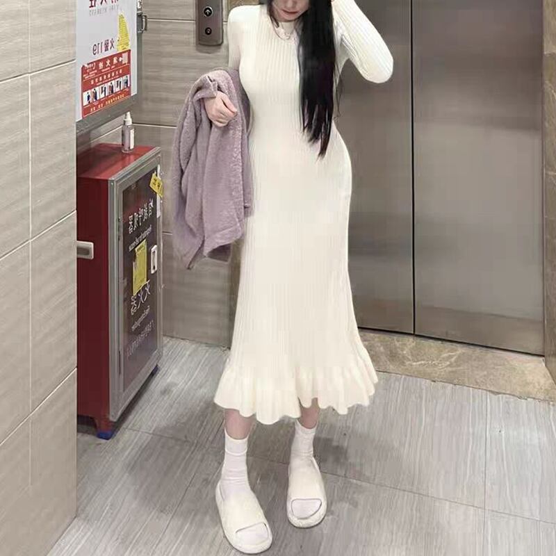 ニットワンピース ワンピース フレアワンピース ミモレ ミモレ丈 袖あり 長袖 Uネック ラウンドネック 襟なし スリム タイト 細身 Aライン フリル リブ リブニット 伸縮性 かわいい 大人可愛い きれいめ シンプル カジュアル 大人 上品 おしゃれ 大人女子 こなれ感 キュート ガーリー モード系 セクシー エレガント モダン 春 秋 10代 20代 30代 レディース デート お出かけ 女子会 休日 着回し 普段使い 韓国 オルチャン ファッション コーデ モテ 体系カバー トレンド インスタ映え | Come to Store