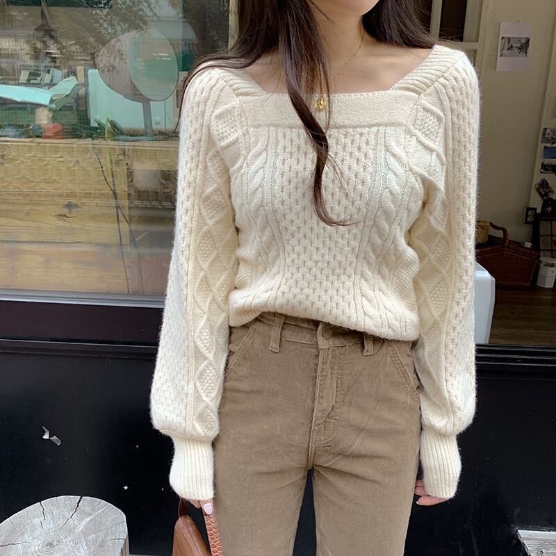 トップス ニットソー セーター ショート 袖あり 長袖 スクエアネック 襟なし 刺繍 ケーブルニット 編み込み ウール 厚手 かわいい 大人可愛い シンプル カジュアル 大人 おしゃれ お洒落 大人女子 ラフ 無地 柄 秋 冬 クリスマス バレンタイン 10代 20代 30代 40代 レディース 女性用 オフィス 通勤 デート お出かけ 公園デビュー 休日 旅行 普段使い 楽ちん 暖かい サイズ フリーサイズ 色展開 ホワイト ブラック ベージュ 秋カラー | Come to Store