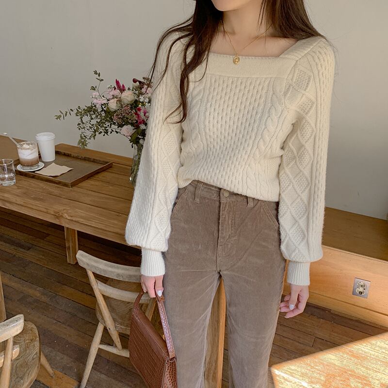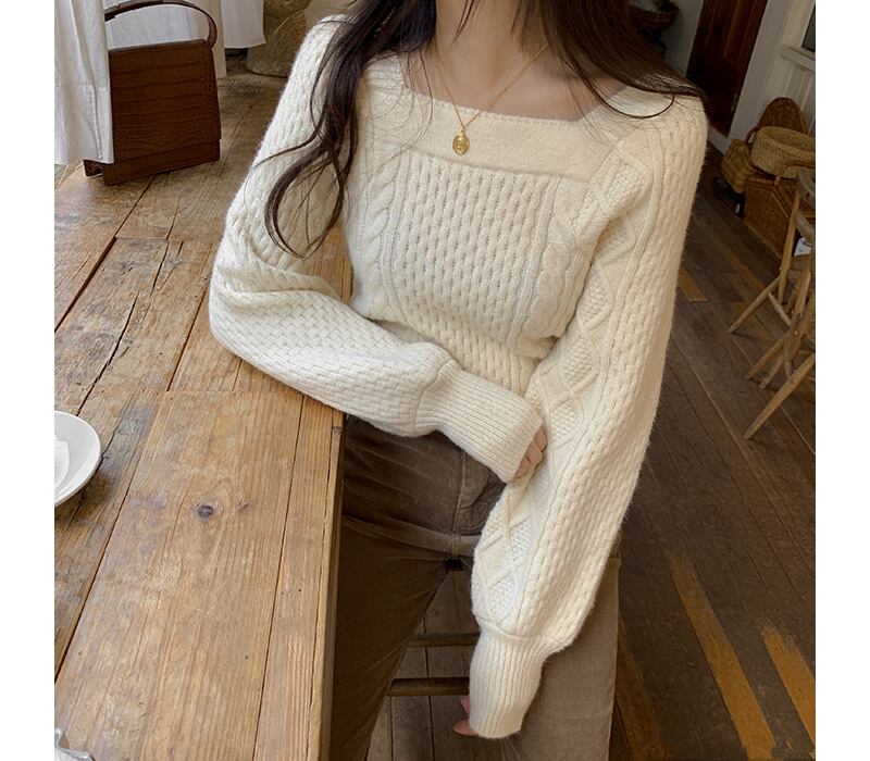 秋冬にぴったりな、暖かなスクエアネックセーター。