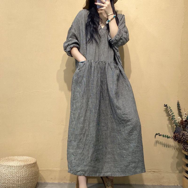 ワンピース フレアワンピース ロング ロング丈 マキシ マキシ丈 袖あり 長袖 Vネック 襟なし フレア ワイド Aライン かわいい 大人可愛い きれいめ シンプル カジュアル 大人 上品 おしゃれ 大人女子 こなれ感 ラフ ラブリー キュート ガーリー ルーズ チェック柄 格子柄 春 秋 10代 20代 30代 レディース デート お出かけ 女子会 休日 着回し 普段使い 韓国 オルチャン ファッション スタイル 楽ちん モテ 体系カバー プチプラ トレンド インスタ映え ビッグサイズ ゆったり ゆる | Come to Store
