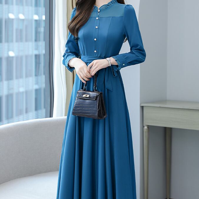 透け感 上品 お呼ばれ シフォン ドレス ワンピース パーティードレス パーティドレス 結婚式ドレス 結婚式のドレス カラードレス ロングドレス ワンピドレス ロング ロング丈 袖あり 長袖 パフスリーブ スタンドカラー フレア チュール シフォン ウエストリボン 切り替えデザインシースルー かわいい 大人可愛い きれいめ 大人 おしゃれ 大人女子 ラブリー キュート エレガント フォーマル とろみ感 クラシック お嬢様 清楚 無地 10代 20代 30代 40代 デート パーティー ホテル レストラン | Come to Store