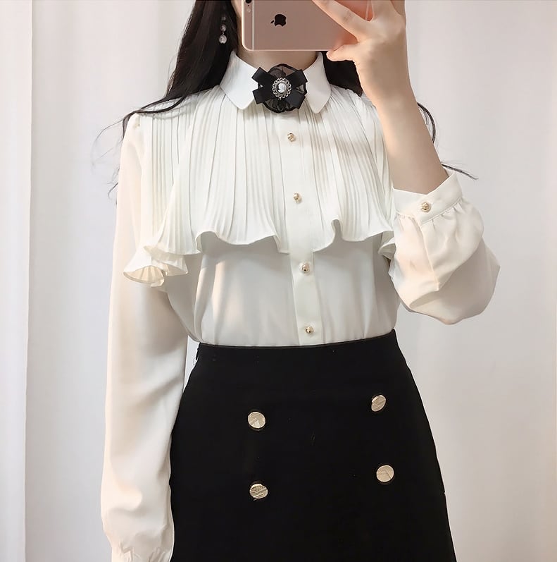 フリル 長袖 シャツ ブラウス トップス 袖あり 襟付き シフォン フリル 前開き チョーカー風 かわいい 大人可愛い きれいめ シンプル 大人 上品 おしゃれ かっこいい 大人女子 こなれ感 マニッシュ ラブリー キュート ガーリー 個性的 エレガント モダン フォーマル とろみ感 無地 春 秋 冬 10代 20代 30代 40代 オフィス ビジネス OL 通勤 デート お出かけ 休日 パーティー イベント 着回し 普段使い 韓国系 コーデ スタイル モテ インスタ映え S M L XL 2色展開 | Come to Store
