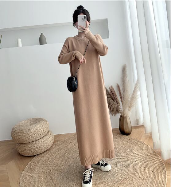 ワンピース 部屋着 ワンピドレス 膝下 ロング ロング丈 袖あり 長袖 ラウンドネック 襟なし 細身 ストレート Iライン 綿 ニット かわいい 大人可愛い シンプル カジュアル 大人 大人女子 こなれ感 ラフ 無地 秋 冬 10代 20代 30代 レディース 女性用 通勤 デート お出かけ 公園デビュー お泊まり 休日 旅行 ホテル ガーデン レストラン 普段使い 楽ちん サイズ S M L XL 色展開 黒 ブラック ブルー パープル ブラウン ベージュ アプリコット | Come to Store