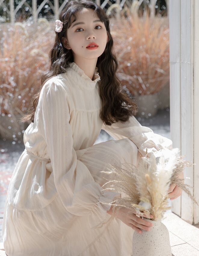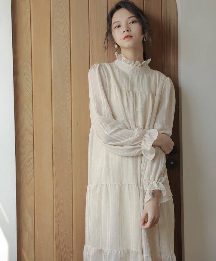 ワンピース ワンピドレス 膝下 ロング ロング丈 袖あり 長袖 ハイネック 襟なし Aライン リボン ウエストリボン 透け感 綿 薄手 かわいい 大人可愛い きれいめ シンプル カジュアル 大人 アジアン エスニック 大人女子 ラフ キュート 抜け感 無地 春 秋 誕生日 10代 20代 レディース 女性用 通勤 デート お出かけ 公園デビュー 女子会 お泊まり 休日 イベント リゾート 旅行 ホテル ガーデン レストラン 着回し 普段使い サイズ フリーサイズ 色展開 オフホワイト 春カラー 秋カラー | Come to Store