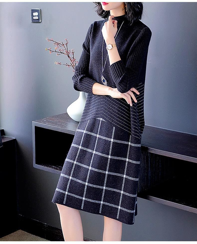 ニットワンピース ワンピース セーター ニットスカート 膝丈 ひざ丈 ミディアム丈 長袖 ハイネック セミフレア ストレート 切り替えデザイン リブニット ニット きれいめ 大人 上品 おしゃれ お洒落 大人女子 こなれ感 エレガント 主役級 柄 チェック柄 ボーダー 秋 冬 卒業式 卒園式 謝恩会 クリスマス バレンタイン 30代 40代 50代 レディース ママ マタニティ OL 通勤 お出かけ 休日 イベント 旅行 ホテル レストラン M L XL ブラック 大人カラー ダークグリーン ワインレッド | Come to Store