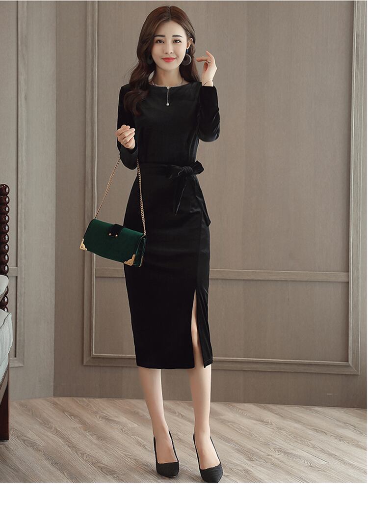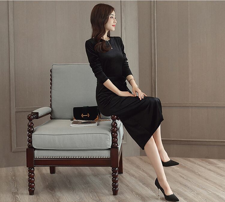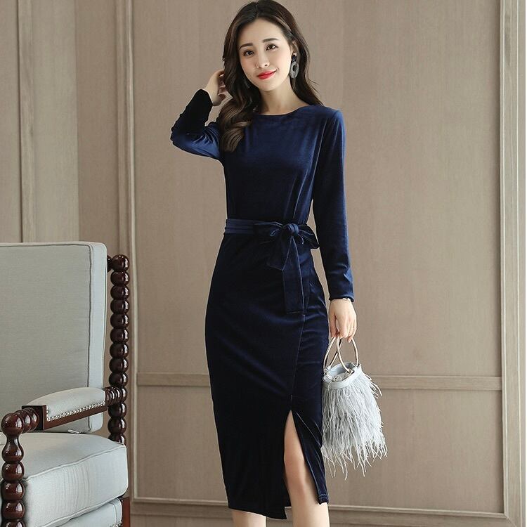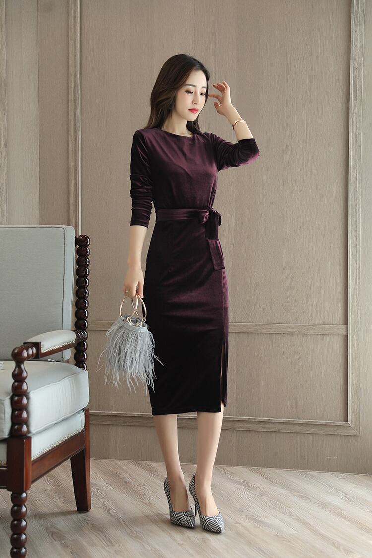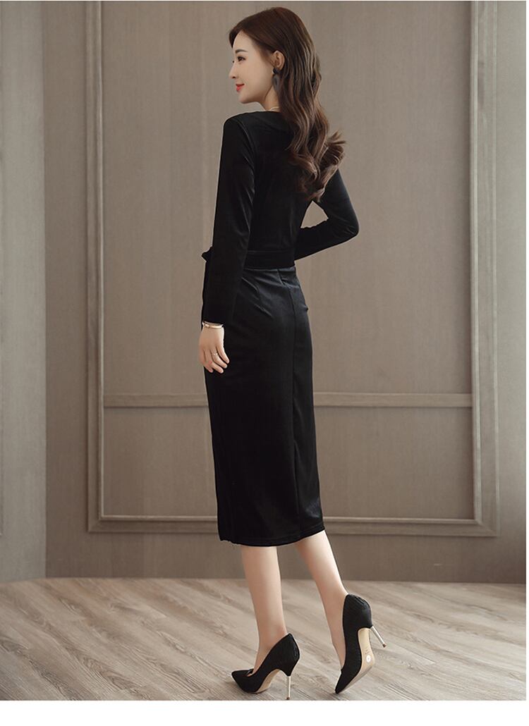 ベルベット生地が高見えしてくれるエレガントなタイトドレス。