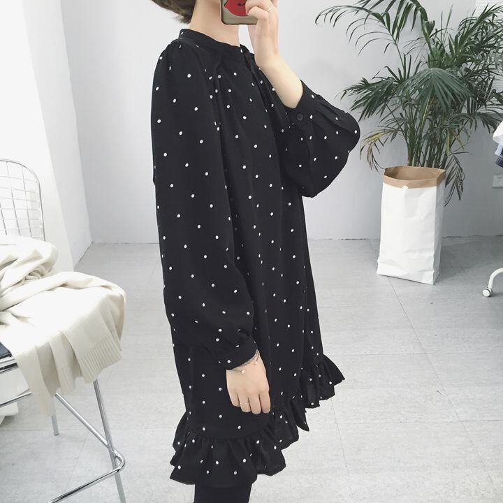ドット柄 裾フレア ワンピース プルオーバー ミニ ミニ丈 膝上 長袖 パフスリーブ スタンドカラー バンドカラー Aライン 切り替えデザイン かわいい 大人可愛い きれいめ シンプル カジュアル 大人 上品 おしゃれ 大人女子 こなれ感 ラブリー キュート ガーリー モード系 モダン 存在感 水玉 秋 冬 10代 20代 30代 40代 レディース 女性用 学生 通学 デート お出かけ 女子会 休日 イベント 着回し 普段使い 韓国系 ファッション コーデ モテ 体系カバー トレンド 流行 インスタ映え | Come to Store