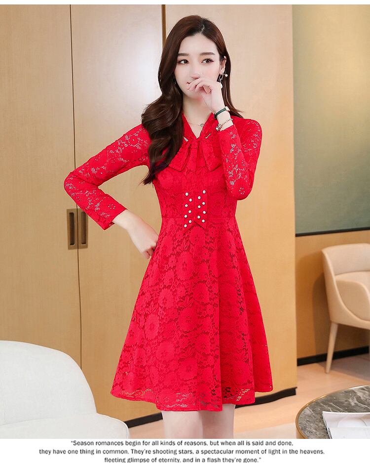 レースワンピース ワンピース ナイトドレス フレアスカート フレアワンピース ワンピドレス 膝丈 ひざ丈 膝上 袖あり 長袖 Vネック リボンタイ タイト 細身 Aライン レース リボン ベルベット きれいめ 大人 上品 おしゃれ お洒落 大人女子 セクシー エレガント 主役級 秋 冬 結婚式 二次会 披露宴 20代 30代 レディース パーティー イベント ホテル レストラン 暖かい モテ M L XL 2XL 3XL 4XL 5XL 黒 ブラック 赤 レッド 紺 ネイビー ワインレッド 大人カラー | Come to Store