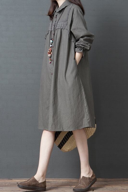 ドット柄 リネンワンピース ワンピース シャツワンピース フレアワンピース 膝丈 ひざ丈 膝下 袖あり 長袖 ボリューム袖 袖ギャザー 袖ゴム 襟付き フレア Aライン レース フリル 前開き ポケット リネン かわいい カジュアル おしゃれ お洒落 レトロ ラフ ラブリー キュート ガーリー こなれ感 ドット柄 春 秋 10代 20代 30代 40代 レディース ママ マタニティ お泊まり 休日 リゾート 旅行 普段使い ファッション M L XL 2XL ゆったり ゆる 茶色 ブラウン 灰色 グレー | Come to Store