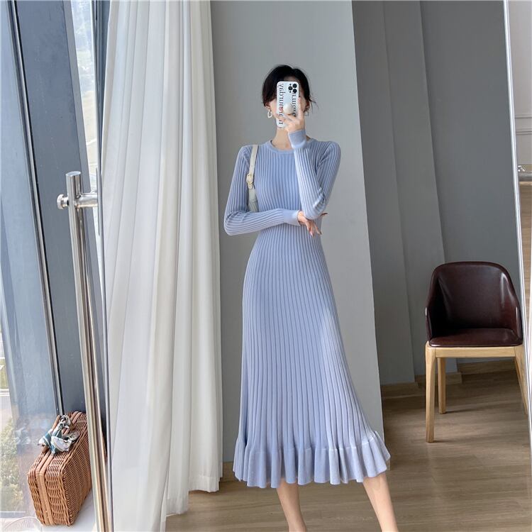 上品 プリーツ ロング ニット ワンピース ニットスカート ロング丈 袖あり 長袖 Uネック ラウンドネック クルーネック フレア 切り替えデザイン リブ 伸縮性 かわいい 大人可愛い きれいめ シンプル カジュアル 大人 大人女子 こなれ感 ラブリー キュート モード系 エレガント モダン フォーマル 無地 秋 冬 10代 20代 30代 40代 50代 60代 オフィス ビジネス OL 通勤 デート お出かけ 休日 パーティー イベント ホテル レストラン 着回し 普段使い 韓国 楽ちん 体系カバー | Come to Store