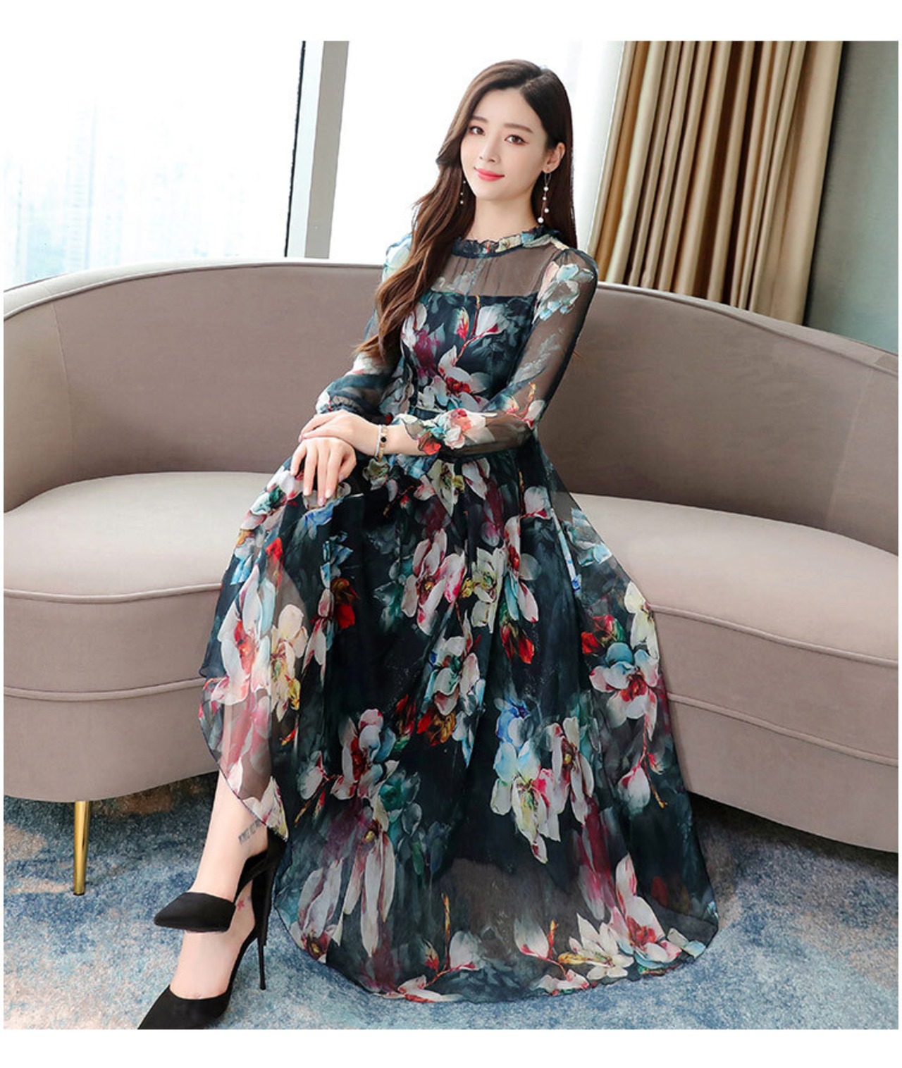 きれいめ シフォン 花柄 ロング ワンピース フレアワンピース ロング丈 長袖 パフスリーブ スタンドカラー フレア 透け感 シースルー かわいい 大人可愛い カジュアル 大人 上品 おしゃれ こなれ感 ラブリー キュート ガーリー モード系 エレガント モダン フォーマル とろみ感 フラワー 入学式 入園式 卒業式 卒園式 謝恩会 結婚式 冠婚葬祭 10代 20代 30代 40代 50代 60代 デート お出かけ 休日 パーティー ホテル レストラン 楽ちん モテ 脚長 M L XL 2XL 3XL | Come to Store
