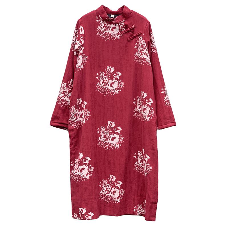 ボア付き ロング チャイナ ワンピース シャツワンピース フレアワンピース ロング丈 袖あり 長袖 スタンドカラー ストレート ワイド ボア かわいい 大人可愛い きれいめ カジュアル 大人 上品 おしゃれ アジアン こなれ感 ラフ ラブリー キュート ガーリー ルーズ 個性的 主役級 存在感 柄 花柄 フラワー 秋 冬 10代 20代 30代 40代 50代 60代 レディース 女子会 休日 着回し 普段使い 重ね着 暖かい 防寒 体系カバー M L XL 2XL ゆったり ゆる サイズ レッド ブルー | Come to Store