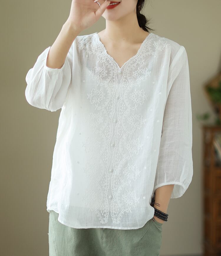 ナチュラルな刺繍デザインが大人可愛いブラウス。