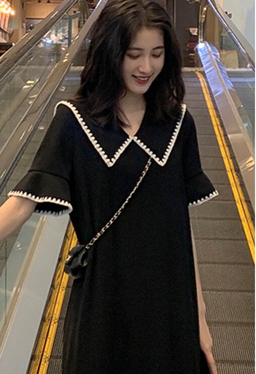 若見え 夏服 サマードレス スカート ワンピース マタニティウェア フレアスカート 膝丈 ひざ丈 ミドル丈 袖あり 半袖 襟付き ラペルネック Aライン 薄手 大人可愛い シンプル おしゃれ ラブリー キュート 無地 夏 誕生日 結婚式 二次会 20代 30代 40代 レディース ママ マタニティ ぽっちゃりさん デート お出かけ 女子会 休日 パーティー イベント 旅行 普段使い 韓国系 ファッション 楽ちん モテ 体系カバー ギフト L XL 2XL 3XL 4XL 大きいサイズ 大きめ ゆったり 黒 | Come to Store