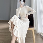 ニットワンピース タイトワンピース ワンピース フレアワンピース ミモレ ミモレ丈 袖あり 長袖 Uネック ラウンドネック 襟なし セミフレア スリム タイト 細身 Iライン マーメイド フリル リブ リブニット 伸縮性 ニット かわいい 大人可愛い きれいめ シンプル カジュアル 大人 おしゃれ 大人女子 こなれ感 ルーズ 個性的 クール モード系 セクシー エレガント モダン 無地 秋 冬 10代 20代 30代 レディース デート お出かけ 女子会 休日 着回し 普段使い 重ね着 韓国 オルチャン | Come to Store