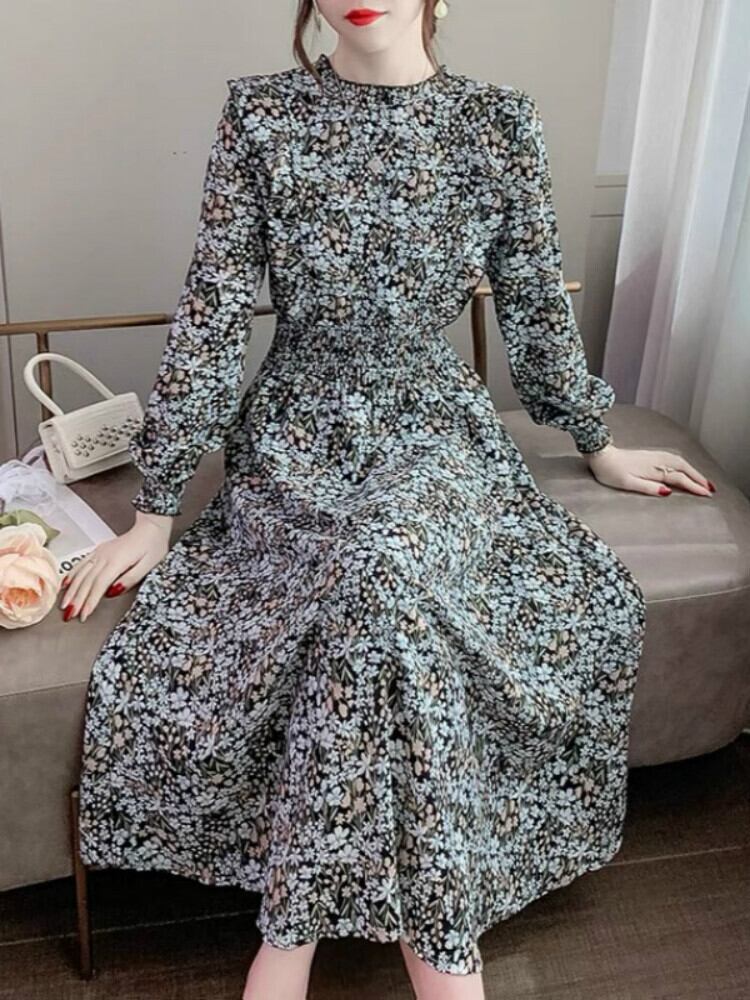 小花柄 ハイウエスト ロング ワンピース フレアワンピース ロング丈 マキシ マキシ丈 アンクル丈 長袖 パフスリーブ フレアスリーブ スタンドカラー フレア ウエストマーク ウエストゴム シャーリング かわいい 大人可愛い きれいめ カジュアル 大人 上品 おしゃれ 大人女子 こなれ感 ラブリー キュート ガーリー モダン 存在感 とろみ感 花柄 フラワー 春 秋 10代 20代 30代 40代 50代 60代 レディース デート お出かけ 女子会 休日 着回し 普段使い モテ 体系カバー トレンド | Come to Store