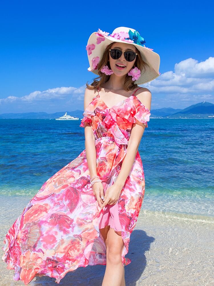 ビーチドレス ワンピース キャミソール ロングスカート ワンピドレス マキシ マキシ丈 袖なし ノースリーブ キャミソール Vネック Aライン フリル バックシャン ふわふわ 透け感 ドレープ 薄手 かわいい カジュアル おしゃれ お洒落 エキゾチック ラフ キュート 主役級 存在感 花柄 フラワー リーフ柄 夏 10代 20代 30代 40代 レディース 休日 リゾート 旅行 海 プール コーデ モテ 体系カバー インスタ映え S M L XL ホワイト レッド パープル イエロー ピンク カラバリ | Come to Store