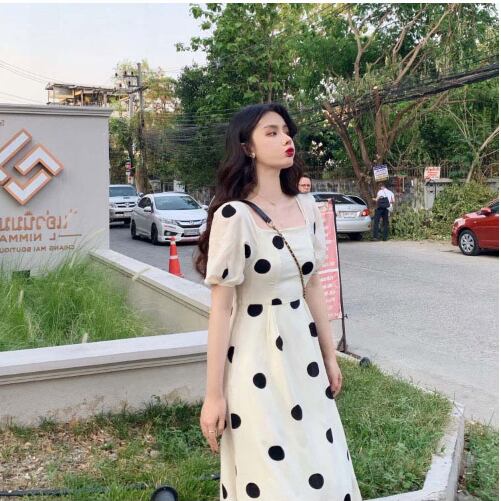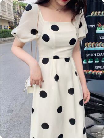 水玉 ロング ワンピース フレアワンピース 膝下 ロング丈 袖あり 半袖 パフスリーブ スクエアネック フレア Aライン リボン バックシャン バックコンシャス かわいい 大人可愛い きれいめ シンプル カジュアル 大人 上品 おしゃれ 大人女子 こなれ感 ラブリー キュート ガーリー エレガント モダン 抜け感 ドット柄 夏 10代 20代 30代 40代 デート お出かけ 休日 パーティー イベント ホテル レストラン 着回し オルチャン ファッション モテ トレンド インスタ映え S M L XL | Come to Store