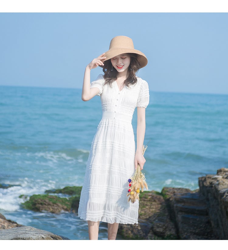 Vネック ミモレ丈 ティアード ワンピース ティアードワンピース 膝下 ミモレ 袖あり 半袖 5分袖 五分袖 パフスリーブ 深Vネック セミフレア Aライン フリル ウエストマーク シャリシャリ かわいい 大人可愛い きれいめ シンプル カジュアル 大人 上品 おしゃれ 大人女子 こなれ感 ラブリー キュート ガーリー エレガント 無地 夏 10代 20代 30代 40代 デート お出かけ 休日 リゾート 旅行 海 高原 普段使い オルチャン ファッション コーデ 楽ちん 体系カバー XS S M L | Come to Store