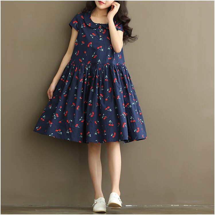 ワンピース フレアワンピース ワンピドレス 膝丈 ひざ丈 袖あり 半袖 ラウンドネック 襟付き Aライン ハイウエスト 綿 リネン かわいい シンプル おしゃれ お洒落 レトロ ラフ ラブリー キュート 個性的 存在感 柄 プリント 夏 誕生日 10代 20代 レディース 女性用 学生 デート お出かけ 女子会 お泊まり 休日 リゾート 旅行 海 ホテル ガーデン レストラン 普段使い 楽ちん モテ サイズ M L XL 2XL 色展開 白 ホワイト ネイビー | Come to Store