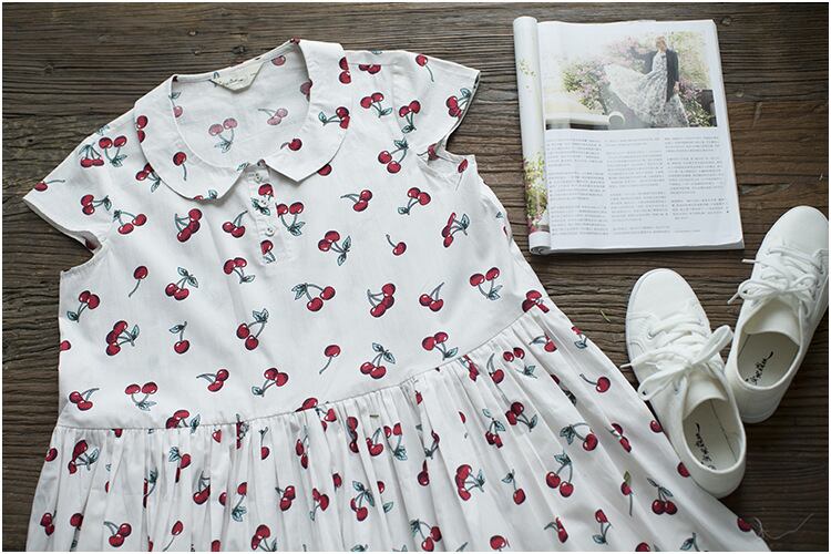 さくらんぼ柄が可愛らしい、 フレアワンピース。