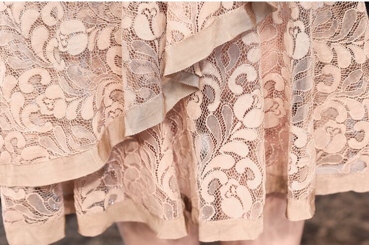 切り替え位置の高めのウエストで脚長効果、スタイルアップできるレースドレスです。