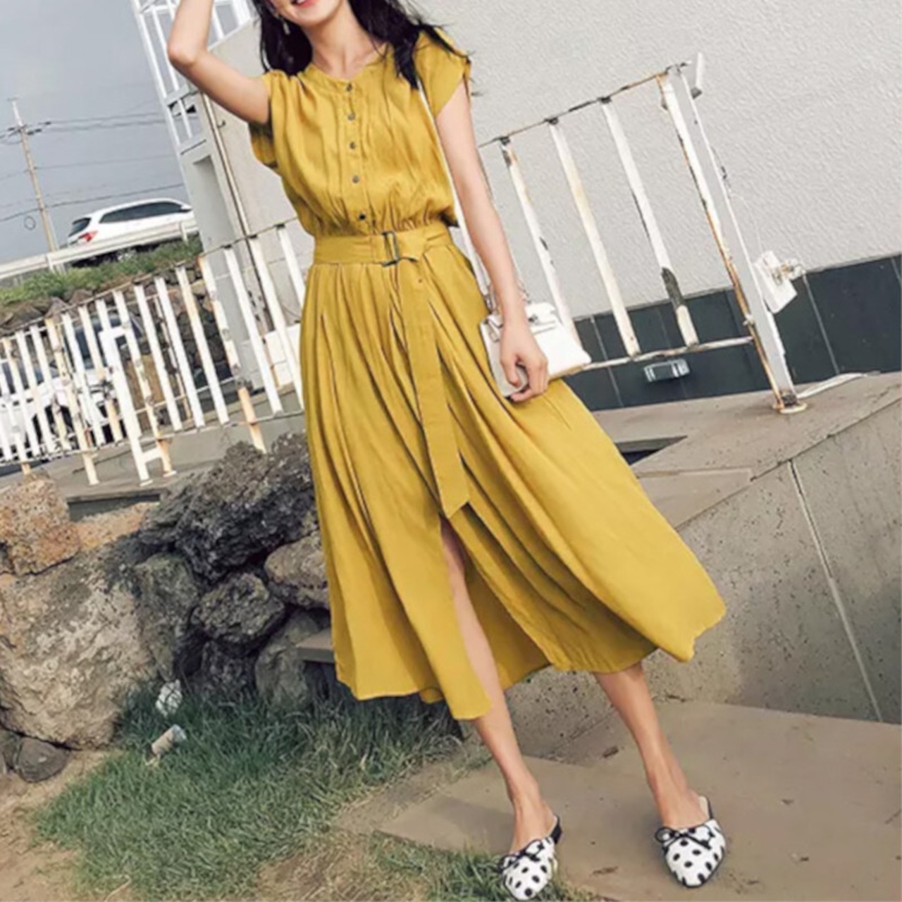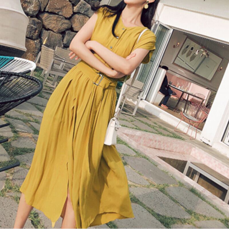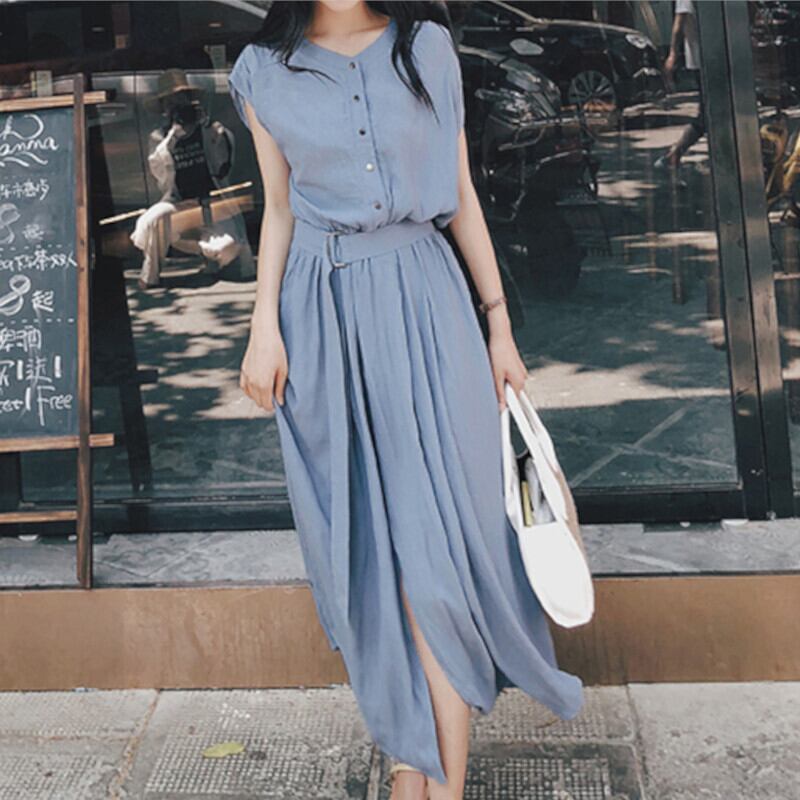 ワンピース ミドル丈 袖あり 半袖 フレンチスリーブ Aライン サイドスリット かわいい 大人可愛い シンプル カジュアル おしゃれ レトロ こなれ感 ラフ 抜け感 無地 春 夏 10代 20代 30代 40代 デート お出かけ 女子会 休日 リゾート 着回し 普段使い 韓国 韓国系 オルチャン ファッション コーデ スタイル モテ 体型カバー 定番 S M L XL 青 ブルー 灰色 グレー ネイビー | Come to Store