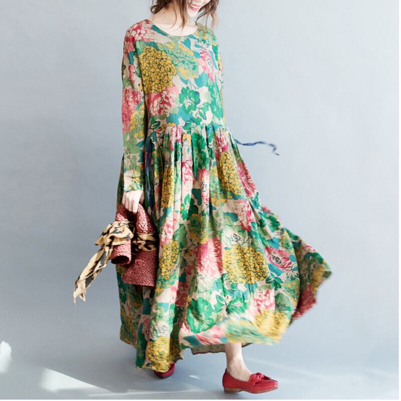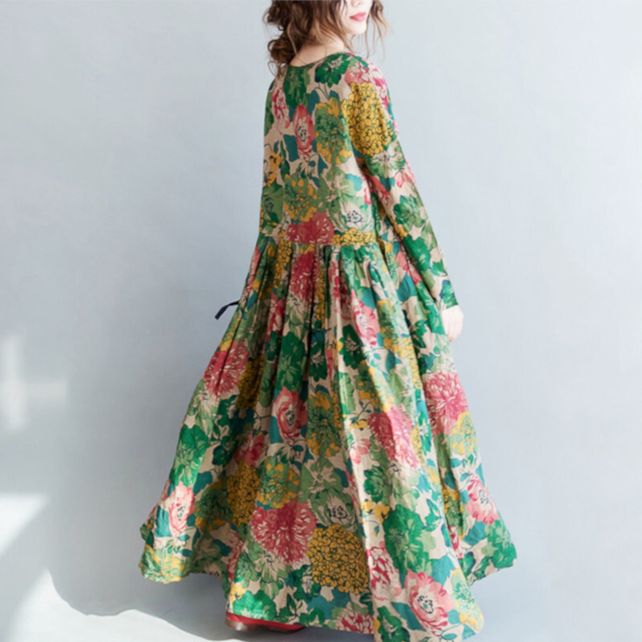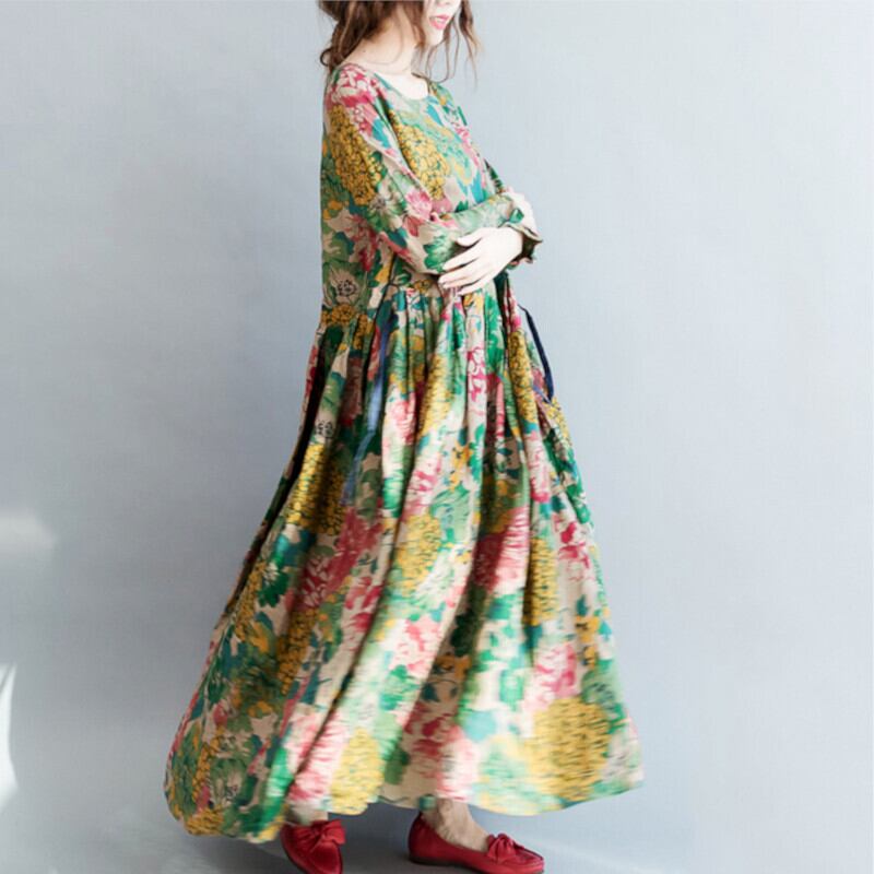 ワンピース ロング丈 マキシ丈 袖あり 長袖 フレア Aライン ハイウエスト かわいい 大人可愛い きれいめ シンプル カジュアル おしゃれ レトロ エスニック エキゾチック こなれ感 ラフ キュート ガーリー エレガント 存在感 とろみ感 抜け感 マタニティ 花柄 ボタニカル 春 夏 10代 20代 30代 40代 デート お出かけ 女子会 休日 リゾート 旅行 着回し 普段使い 韓国 韓国系 オルチャン ファッション コーデ スタイル モテ 体型カバー トレンド ゆったり M L XL グリーン | Come to Store