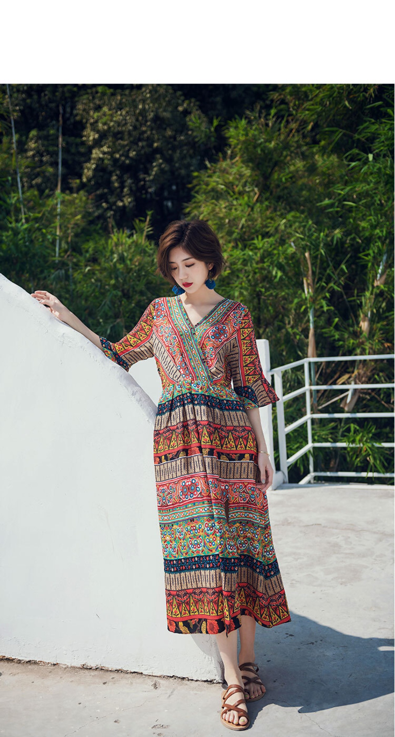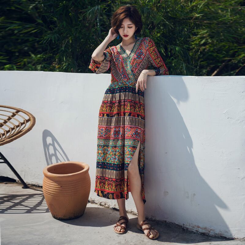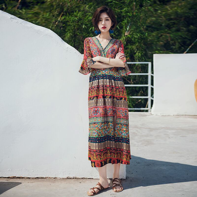 ワンピース フレアワンピース ミモレ ミモレ丈 ロング ロング丈 袖あり 5分袖 五分袖 Vネック 襟なし フレア セミフレア Aライン フリル スリット サイドスリット デニム ブルーデニム カラーデニム かわいい 大人可愛い 大人 上品 おしゃれ アジアン エスニック エキゾチック 大人女子 こなれ感 ラフ ルーズ 個性的 クール モード系 セクシー エレガント モダン 柄 夏 レディース デート お出かけ 女子会 休日 リゾート 旅行 海 着回し 普段使い お揃い 韓国 オルチャン ファッション | Come to Store