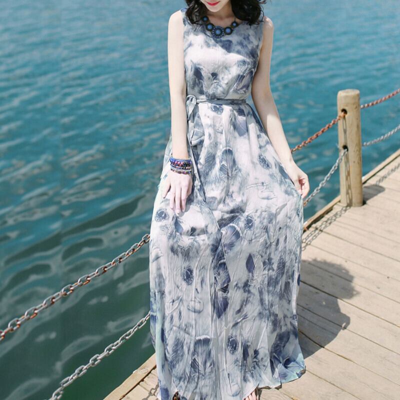 ワンピース ロング丈 マキシ丈 袖なし ノースリーブ Aライン ハイウエスト かわいい 大人可愛い きれいめ シンプル カジュアル 上品 おしゃれ レトロ こなれ感 ラフ ラブリー キュート ガーリー エレガント とろみ感 抜け感 花柄 ボタニカル 春 夏 10代 20代 30代 40代 デート お出かけ 女子会 休日 リゾート 旅行 ホテル レストラン お呼ばれ 着回し 普段使い 韓国 韓国系 オルチャン ファッション コーデ スタイル モテ 体型カバー 美脚 トレンド インスタ映え S M L ブルー | Come to Store