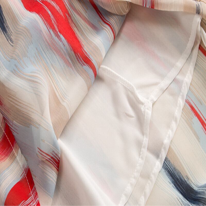 マルチカラーの総柄プリントで華やかな調ロングワンピース。