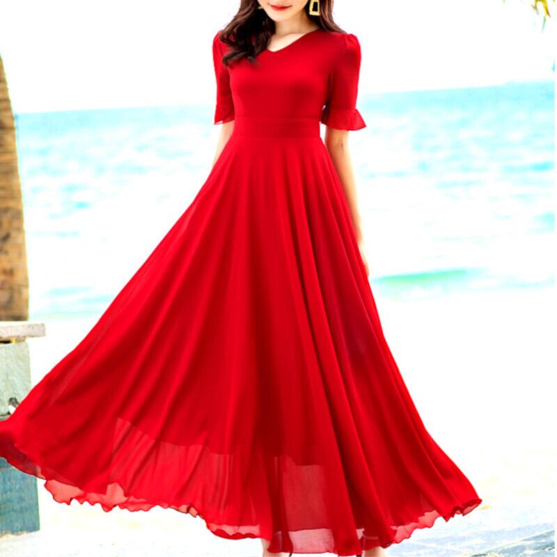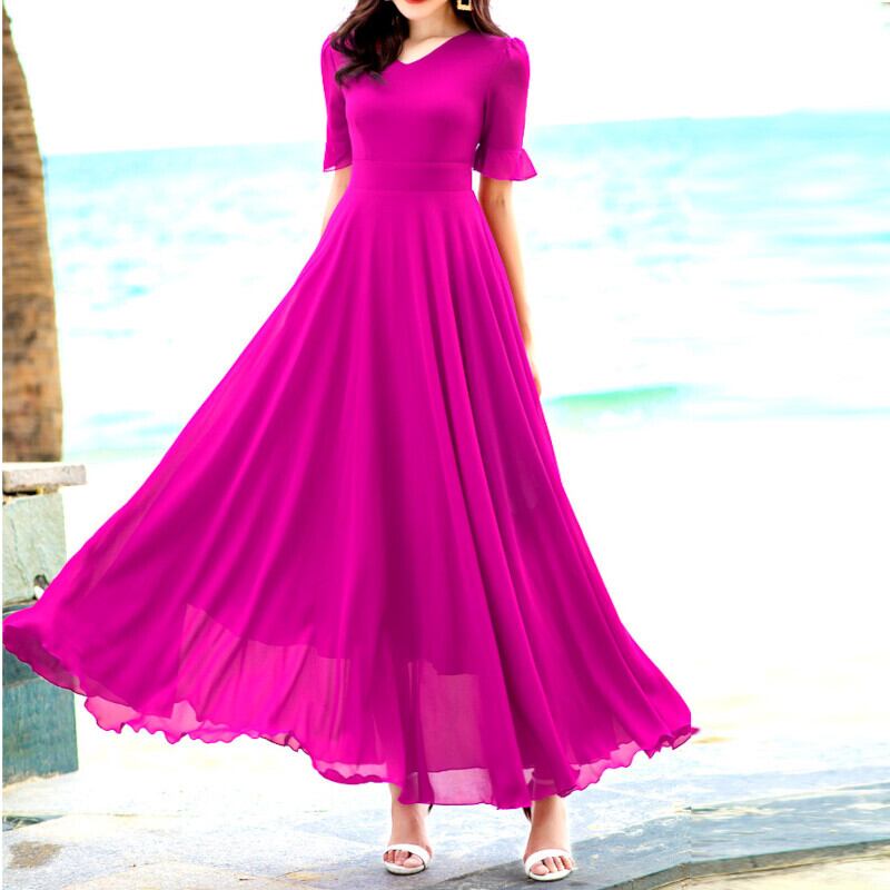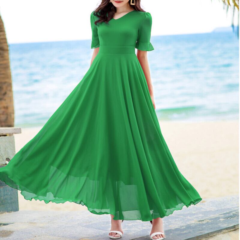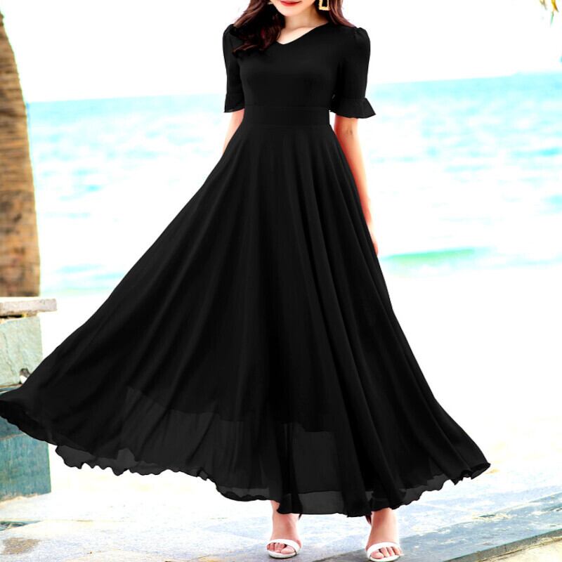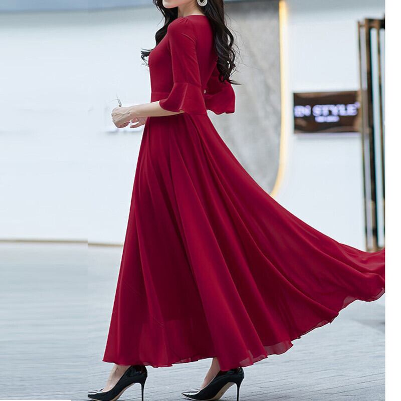 ワンピース シフォンドレス フレアワンピース ロング丈 袖あり 5分袖 トランペットスリーブ Vネック Aライン ハイウエスト かわいい 大人可愛い きれいめ シンプル 上品 おしゃれ レトロ キュート とろみ感 エレガンス 無地 春 夏 10代 20代 30代 40代 デート お出かけ 女子会 パーティー イベント リゾート ホテル レストラン お呼ばれ 韓国 韓国系 オルチャン ファッション コーデ スタイル モテ 体型カバー 美脚 脚長 トレンド インスタ映え M L XL 2XL 3XL 4XL | Come to Store