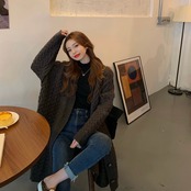 秋冬の時期に、ゆったり着られる、大人可愛いニットカーディガン。