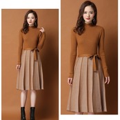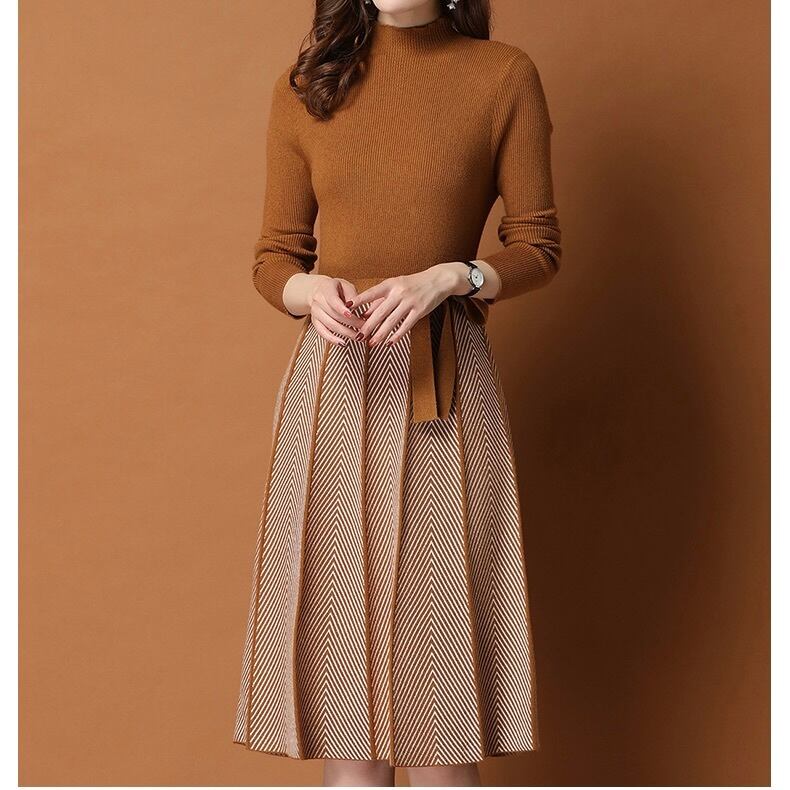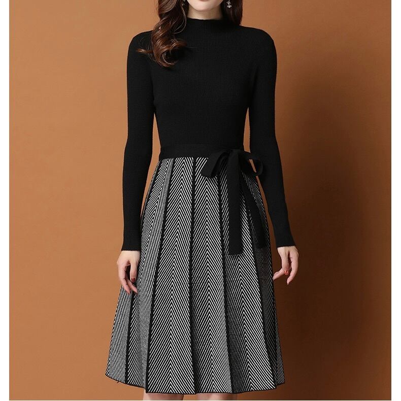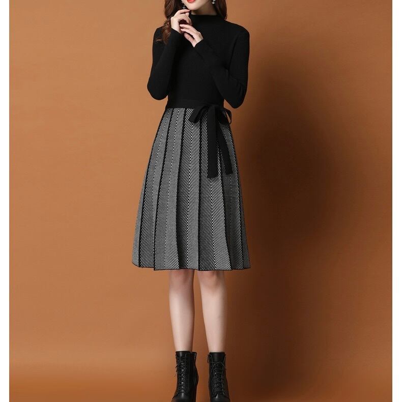ワンピース ルームウェア フレアワンピース 膝丈 ひざ丈 袖あり 長袖 ハイネック 襟なし フレア セミフレア スリム タイト 細身 Aライン 切り替えデザイン ドッキング プリーツ リボン ウエストマーク ウエストリボン かわいい 大人可愛い きれいめ シンプル 大人 上品 おしゃれ 大人女子 こなれ感 ラフ ラブリー キュート ガーリー モード系 モダン 秋 10代 20代 30代 レディース デート お出かけ 女子会 休日 着回し 普段使い 重ね着 韓国 オルチャン ファッション コーデ スタイル | Come to Store