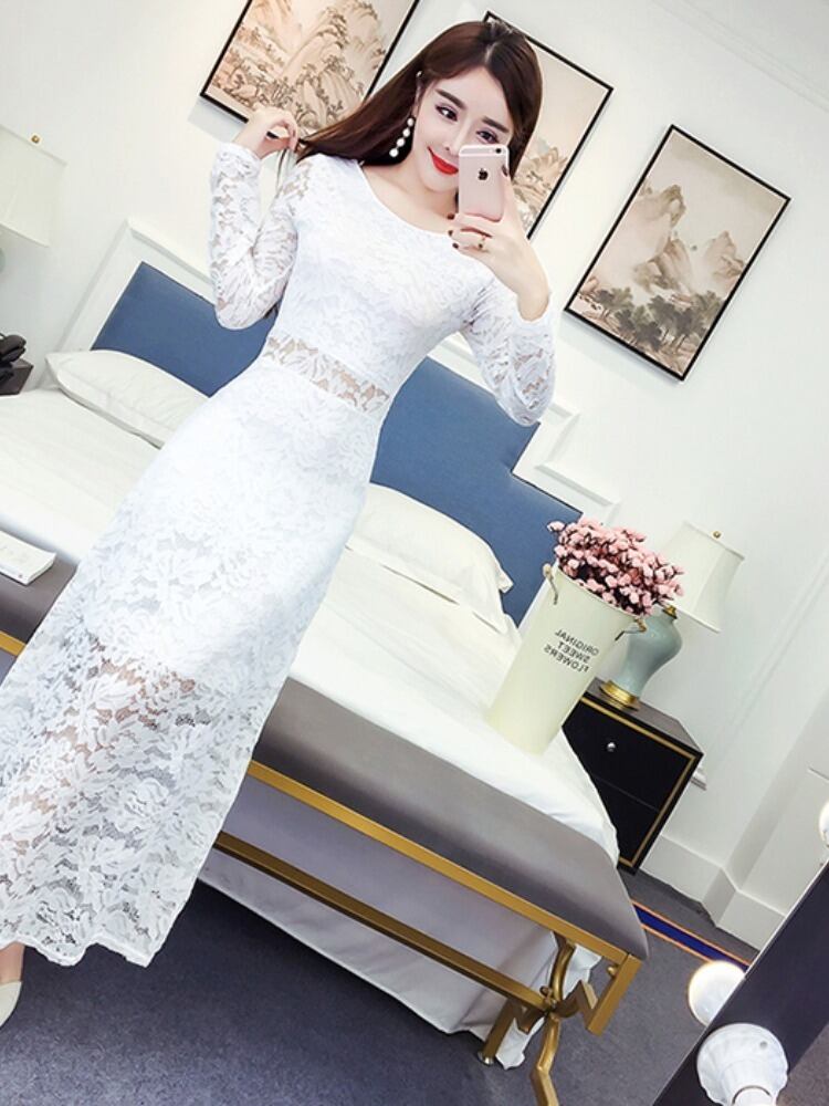 ワンピース フレアワンピース ワンピドレス 膝丈 ひざ丈 ロング ロング丈 アンクル丈 袖あり 長袖 Uネック ラウンドネック 襟なし セミフレア スリム タイト 細身 マーメイド レース 透け感 シースルー かわいい 大人可愛い きれいめ 大人 上品 おしゃれ 大人女子 こなれ感 クール モード系 セクシー エレガント モダン 春 夏 10代 20代 30代 レディース デート お出かけ 女子会 休日 パーティー イベント 韓国 オルチャン ファッション コーデ スタイル モテ トレンド インスタ映え | Come to Store